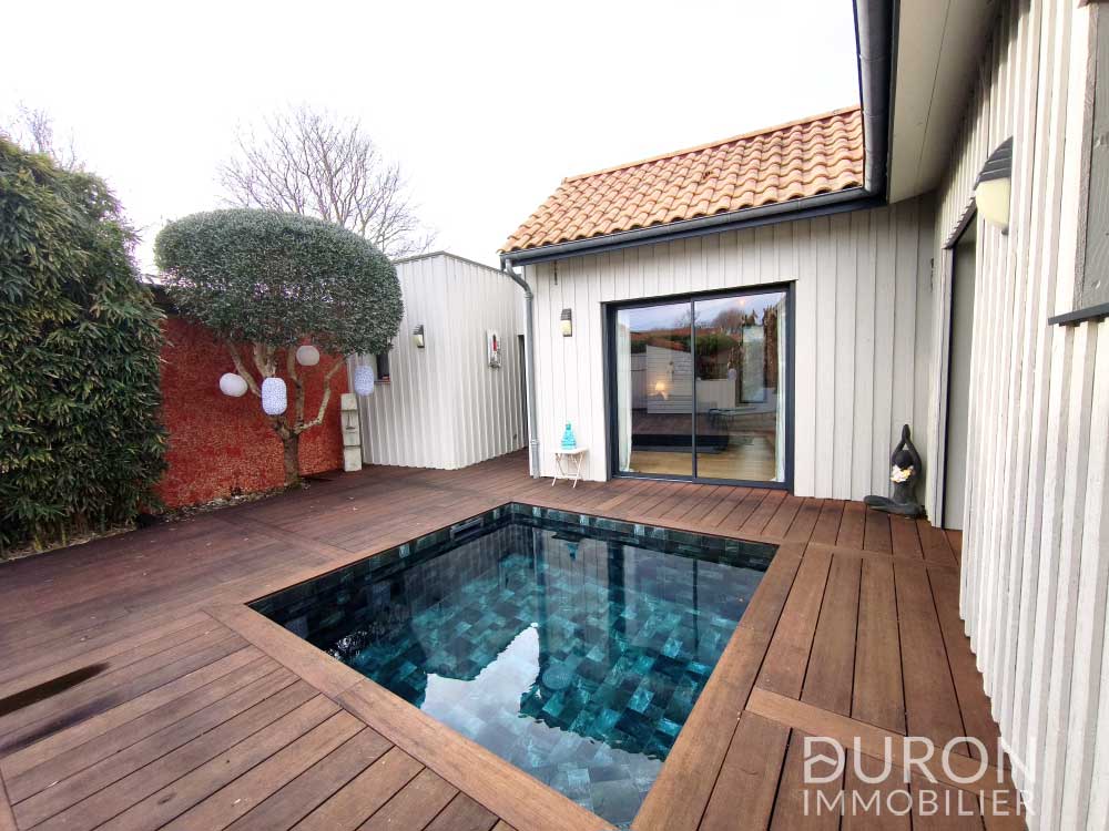 DURON IMMOBILIER vous propose son coup de cœur et une qualité de vie remarquable à travers cette magnifique maison de plain-pied en ossature bois, dans un quartier calme et recherché, et ce, très proche de la plage.